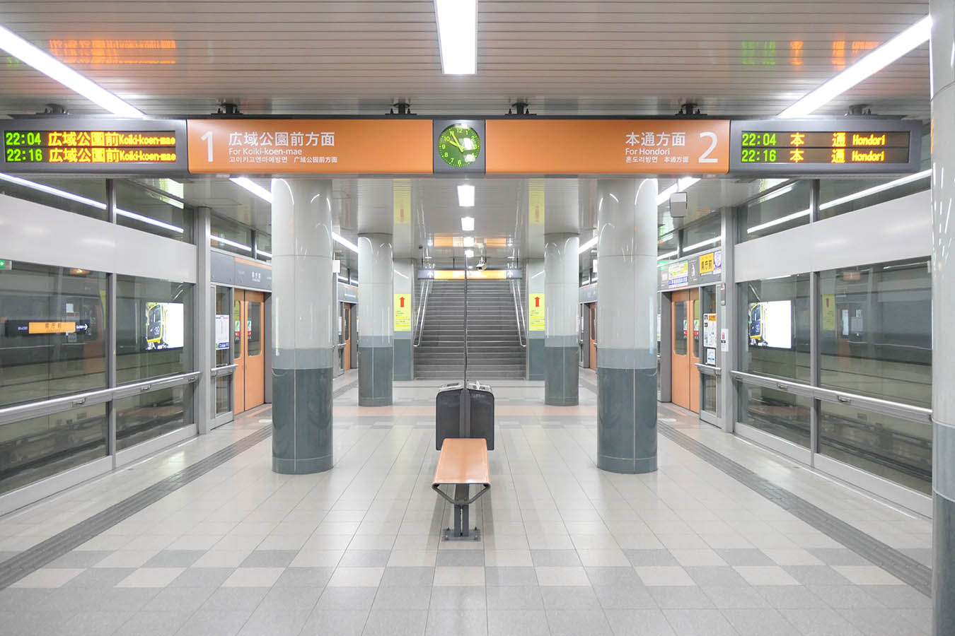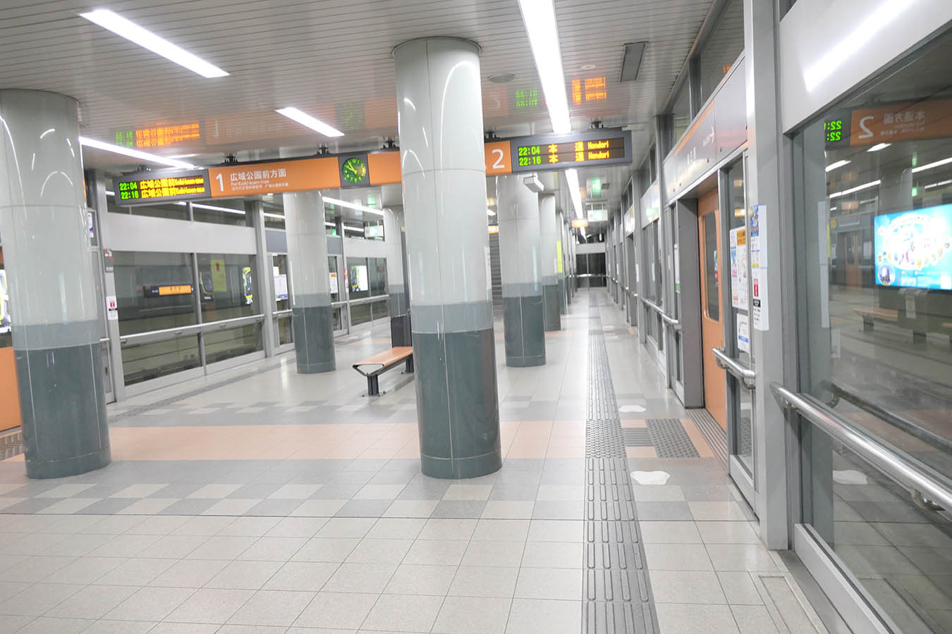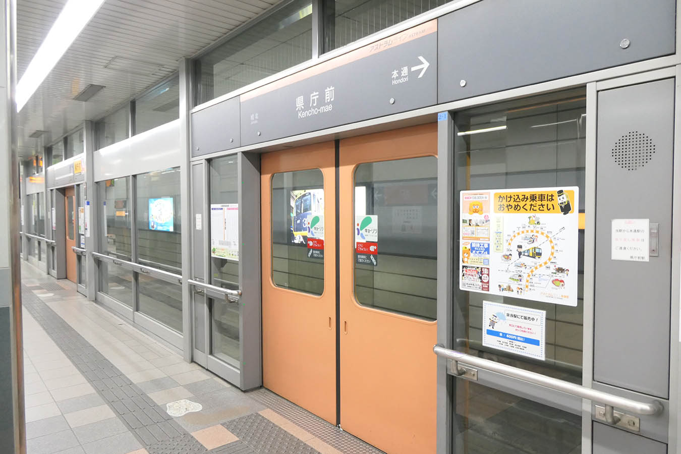 アストラム アストラムライン 県庁前駅 アストラム Twitter- LINE 2016.10.202025.12.14 ←本通駅 ・ 城北駅→ 乗り換え 広島電鉄本線・宇品線 (紙屋町西電停)(紙屋町東電停) 構造 島式ホーム1面2線 NOTE 1994年8月に開業。 ステーションカラーは橙色。 隣の本通駅とは地下街『紙屋町シャレオ』で繋がっている。 途中駅であり、特に隣の駅とは見た目上何の変化はないが、分類上、本通駅までは地下鉄(鉄道)、城北方面は軌道(路面電車などと同じ)扱いとなる。 撮影日:2025年4月