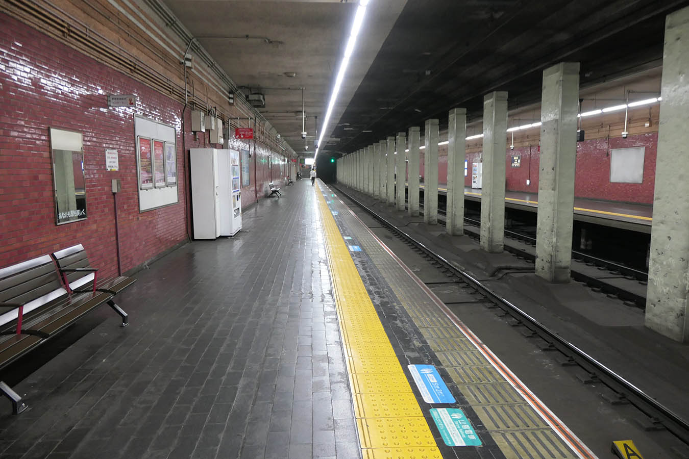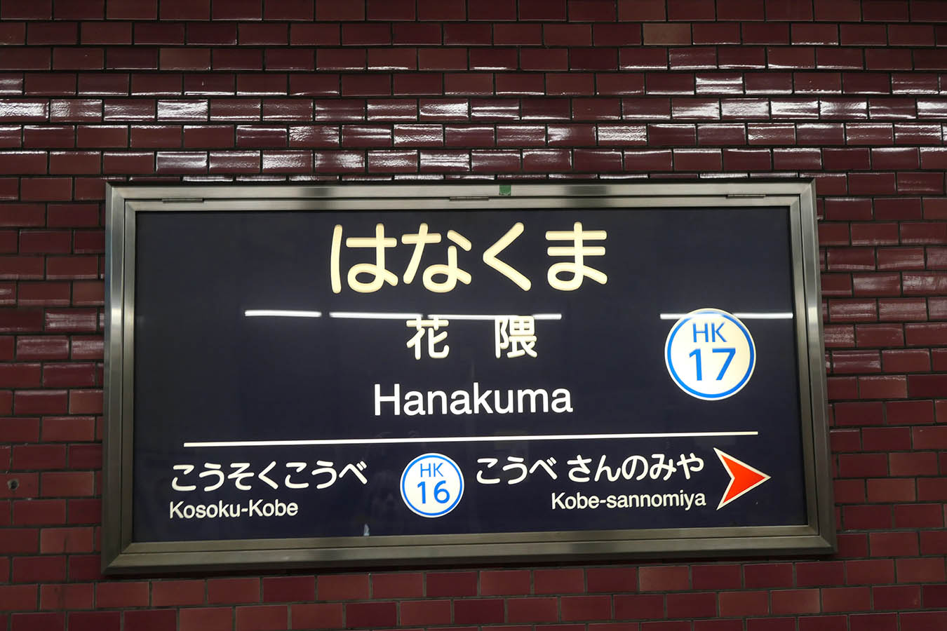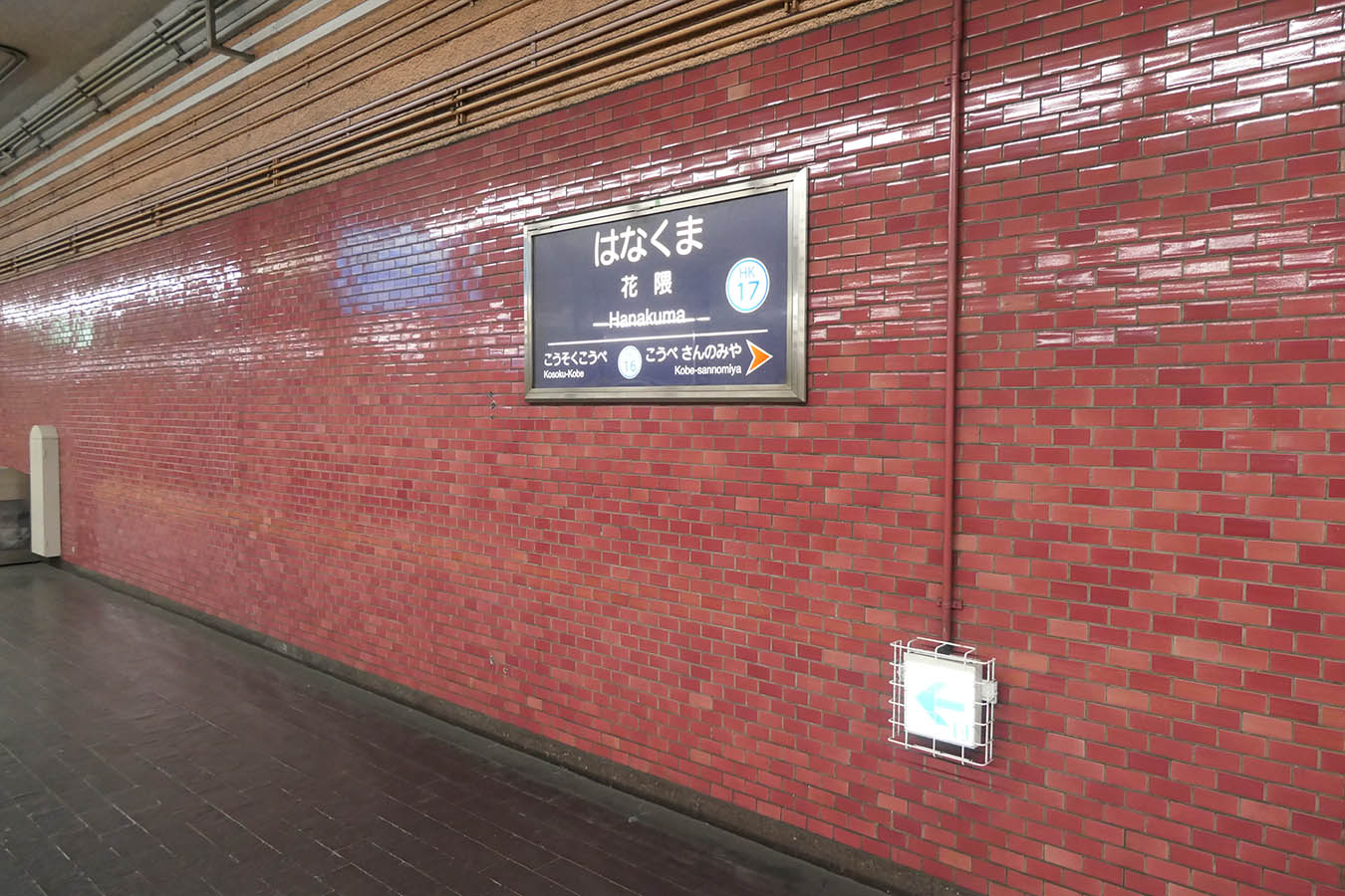 HK17 阪急神戸高速線 花隈駅 阪急 2016.10.032025.10.26 ←HK16 神戸三宮駅・HS35 高速神戸駅→ 乗り換え なし 構造 相対式ホーム2面2線 NOTE 1968年4月開業。 壁はレンガ調タイルで馬目地。 撮影日:2025年4月