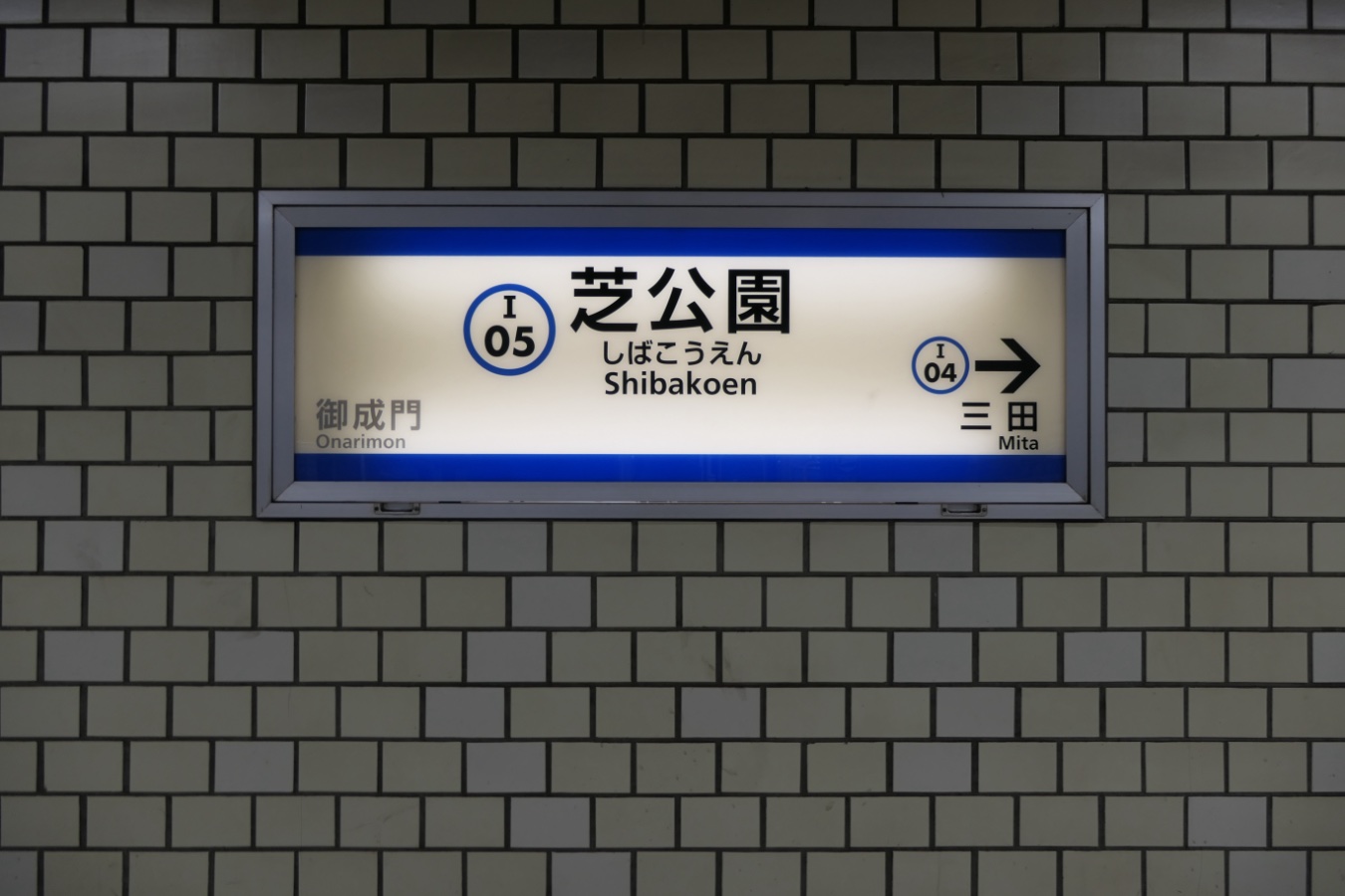 都営三田線 I05 都営三田線 芝公園駅 都営三田線 2015.02.022026.02.07 しばこうえん Shibakoen ←I04 三田駅 ・ I06 御成門駅→ 乗り換え なし 構造 相対式ホーム2面2線 NOTE 1973年11月開業。 壁はクリーム色タイルで馬目地。 撮影日:2026年1月