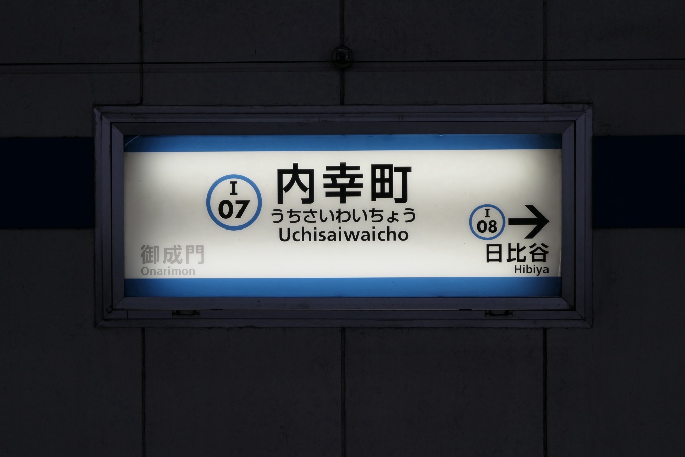 都営三田線 I07 都営三田線 内幸町駅 都営三田線 2015.02.022026.02.07 うちさいわいちょう Uchisaiwaicho ←I06 御成門駅 ・ I08 日比谷駅→ 乗り換え なし 構造 島式ホーム1面2線 NOTE 1973年11月開業。以前は『西新橋』という副駅名が駅名標に併記されていたが、最新の駅名標では無くなっている。 壁は白の縦長プレート。 撮影日:2026年1月