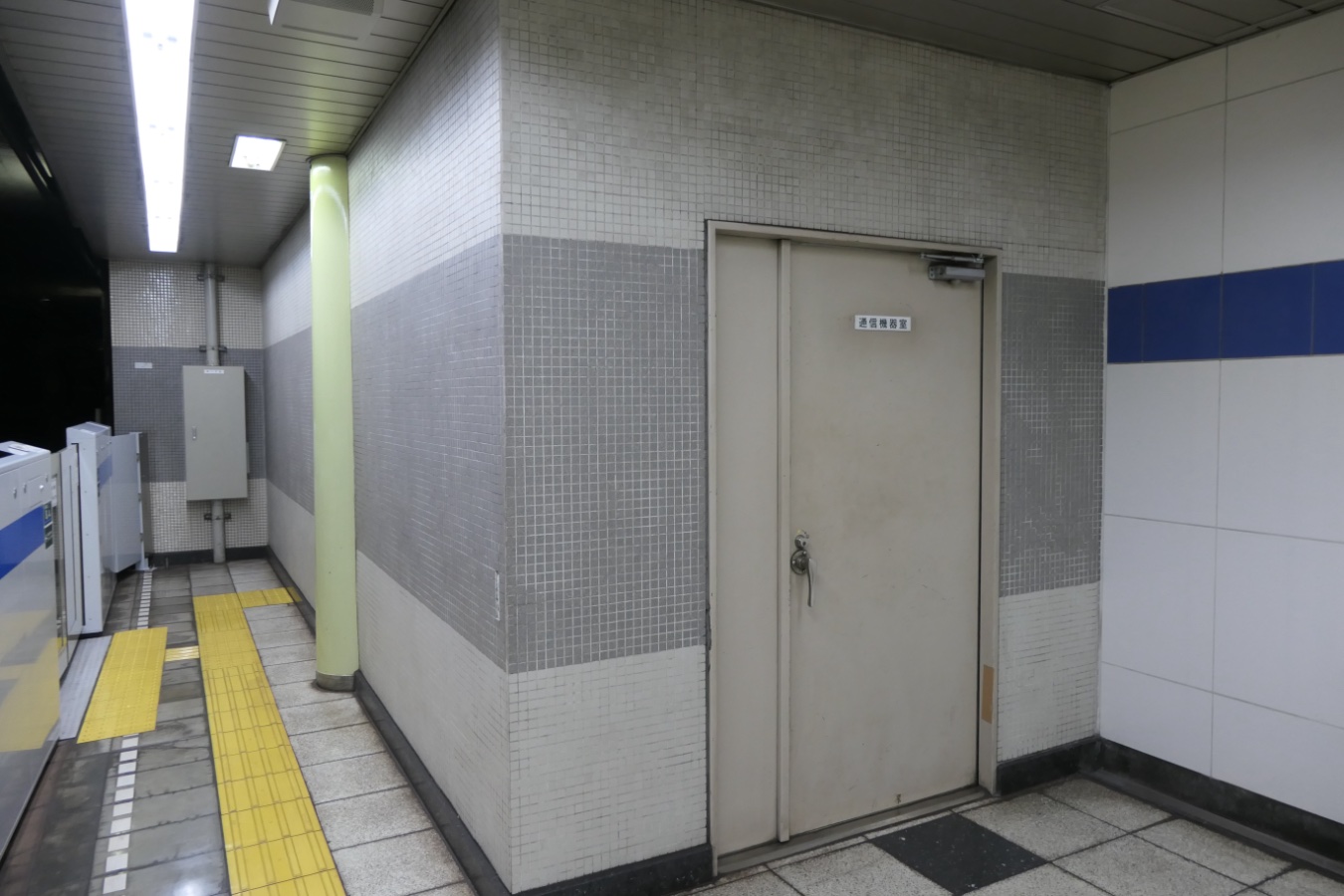 以前の壁は非常に小さい正方形タイルが敷き詰められていた。色は上下が白(クリーム?)、真ん中が水色。