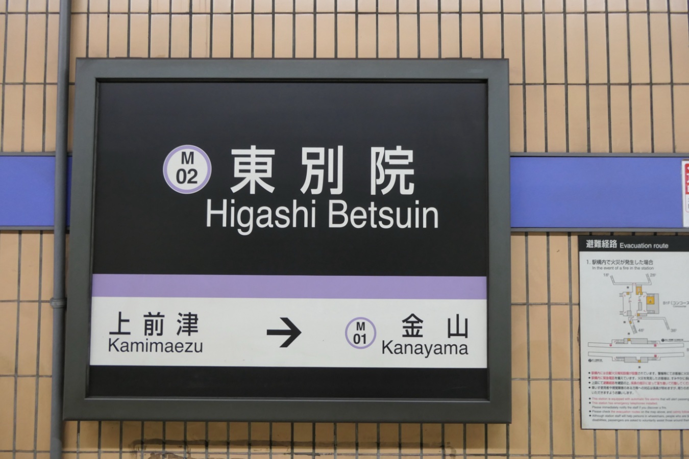 名城線 M02 名古屋市営地下鉄名城線 東別院駅 名城線 2016.04.022025.12.20 ひがしべついん Higashi-betsuin ←M01 金山駅 ・ M03 上前津駅→ 乗り換え なし 構造 相対式ホーム2面2線 NOTE 1967年3月開業。 撮影日:2021年11月