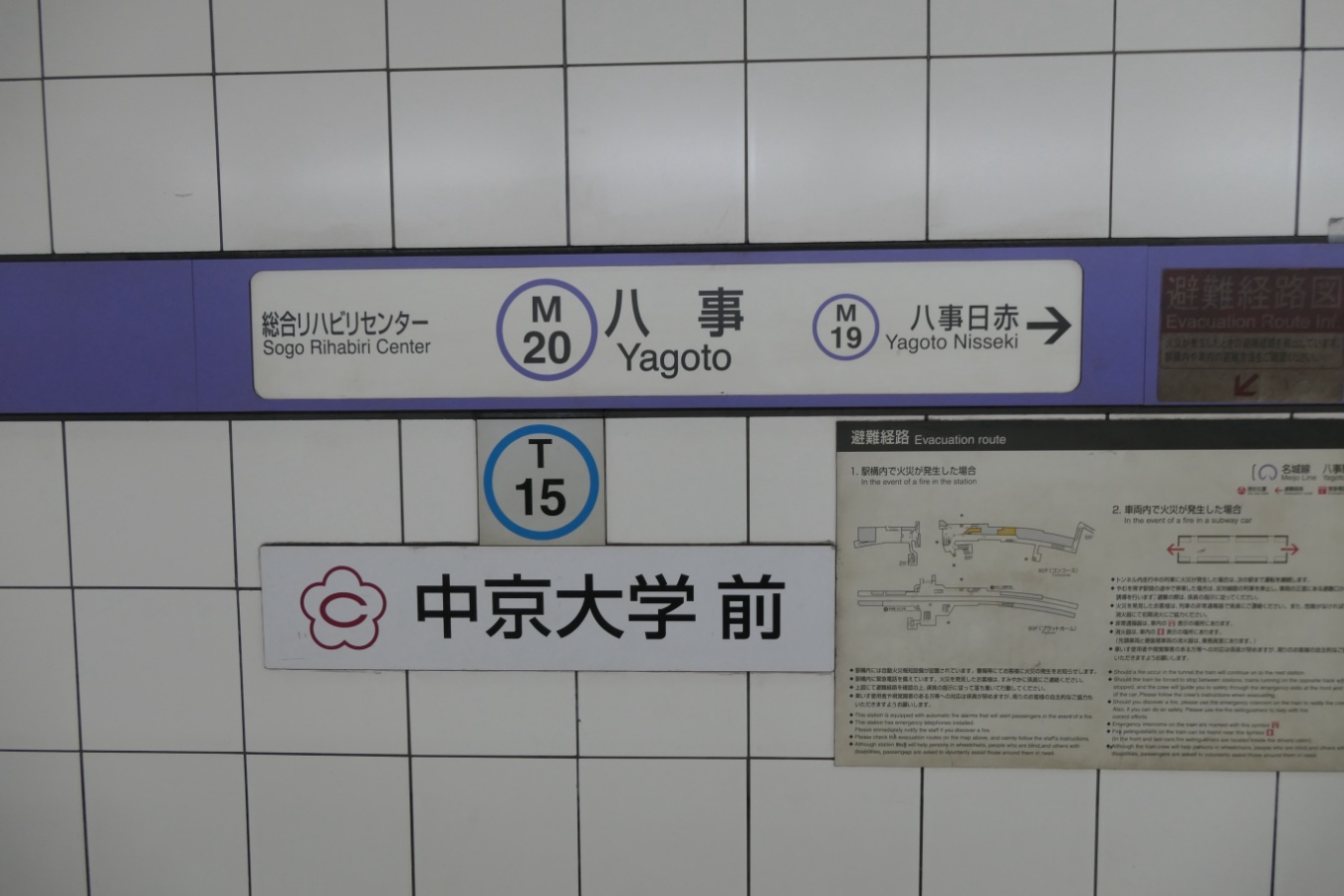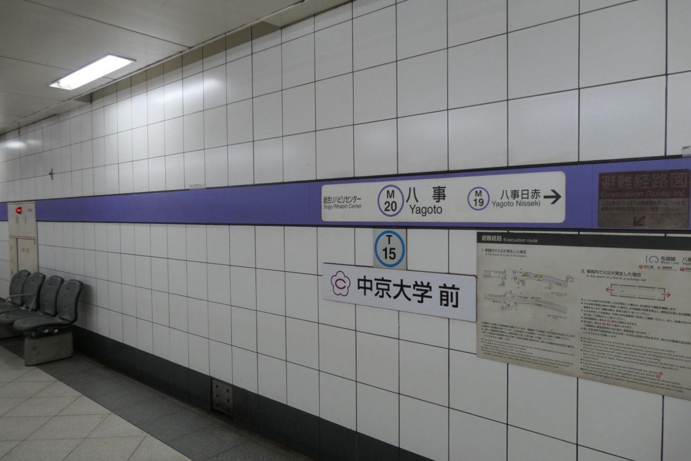M20 名古屋市営地下鉄名城線 八事駅 名城線 Twitter- LINE 2016.04.022025.11.24 ←M19 八事日赤駅・M21 総合リハビリセンター駅→ 乗り換え T15名古屋市営地下鉄鶴舞線 構造 相対式ホーム2面2線 NOTE 2004年10月開業。 撮影日:2021年11月