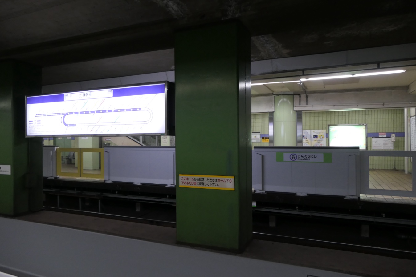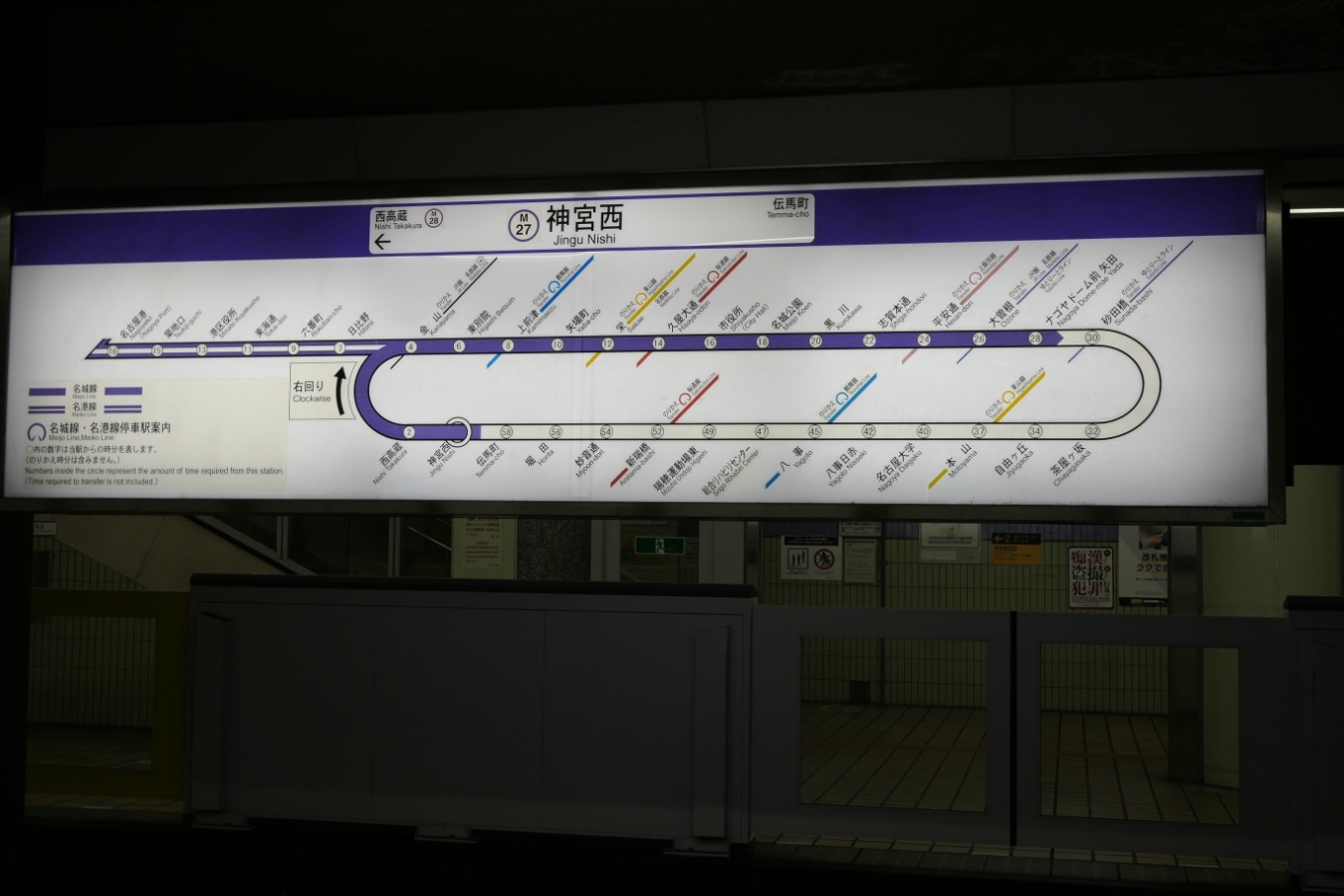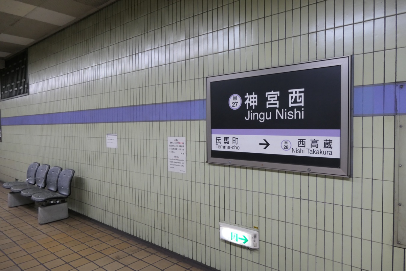 M27 名古屋市営地下鉄名城線 熱田神宮西駅 名城線 2016.04.022025.11.24 ←M26 熱田神宮伝馬町駅・M28 西高蔵駅→ 乗り換え なし 構造 相対式ホーム2面2線 NOTE 1974年3月神宮西駅として開業。2023年1月に現在の駅名に改称。 撮影日:2025年4月 撮影日:2021年11月