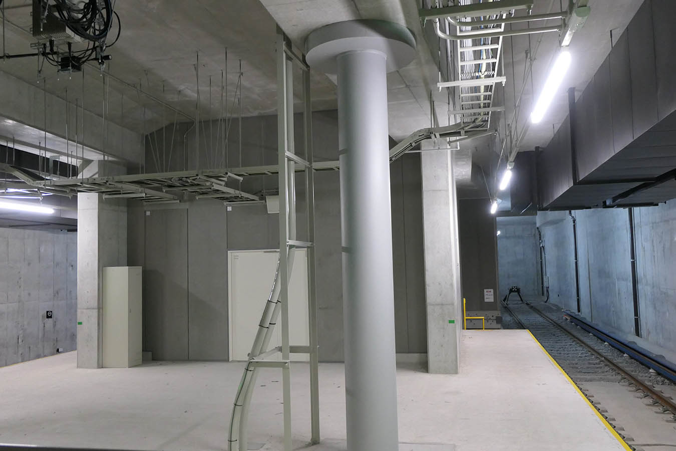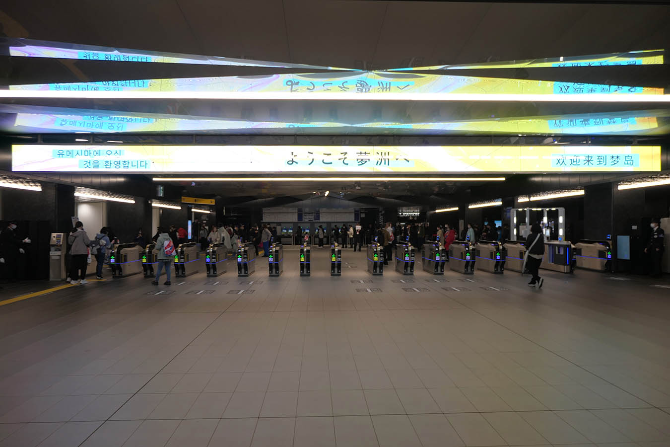 2025年4月〜10月開催の大阪万博に合わせて開業した駅で、混雑に耐えられるようとても幅の広い改札階を持つ。改札階のデジタルサイネージは高さ3m、幅55mと現時点では日本最長を誇る。