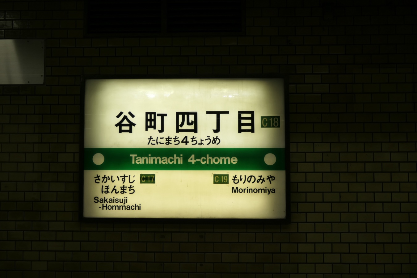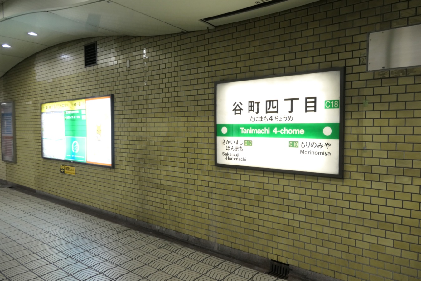 中央線 C18 Osaka Metro中央線 谷町四丁目駅 中央線 2016.01.012025.12.29 たにまちよんちょうめ Tanimachi-yonchome ←C17 堺筋本町駅 ・ C19 森ノ宮駅→ 乗り換え T23OsakaMetro谷町線 構造 相対式ホーム2面2線 NOTE 1967年9月開業。 2025年にリニューアル。デザインコンセプトは「ジャポネスク」。撮影時はまだ工事の最中。 撮影日:2025年4月 リニューアル前のホーム 撮影日:2021年9月