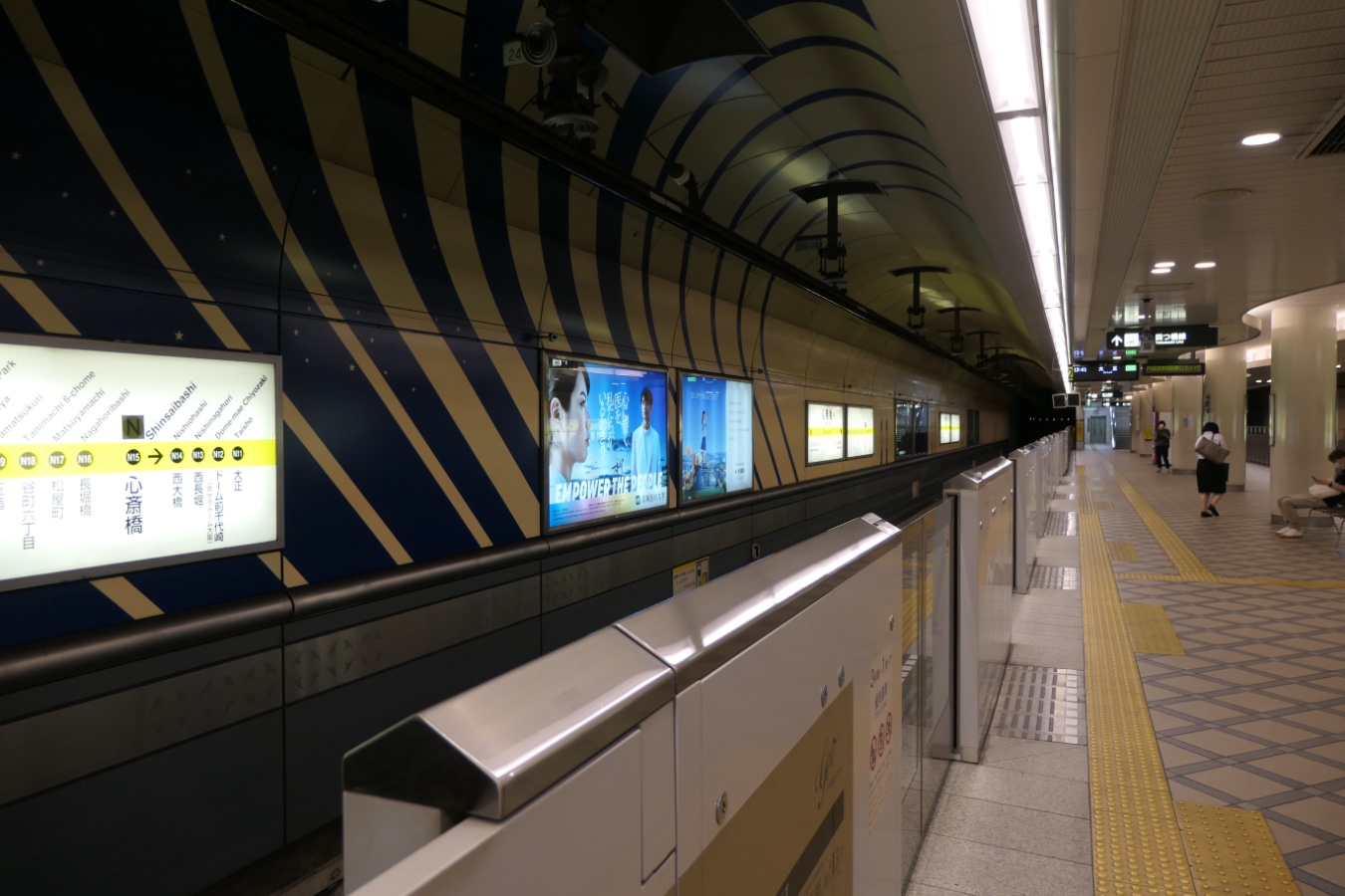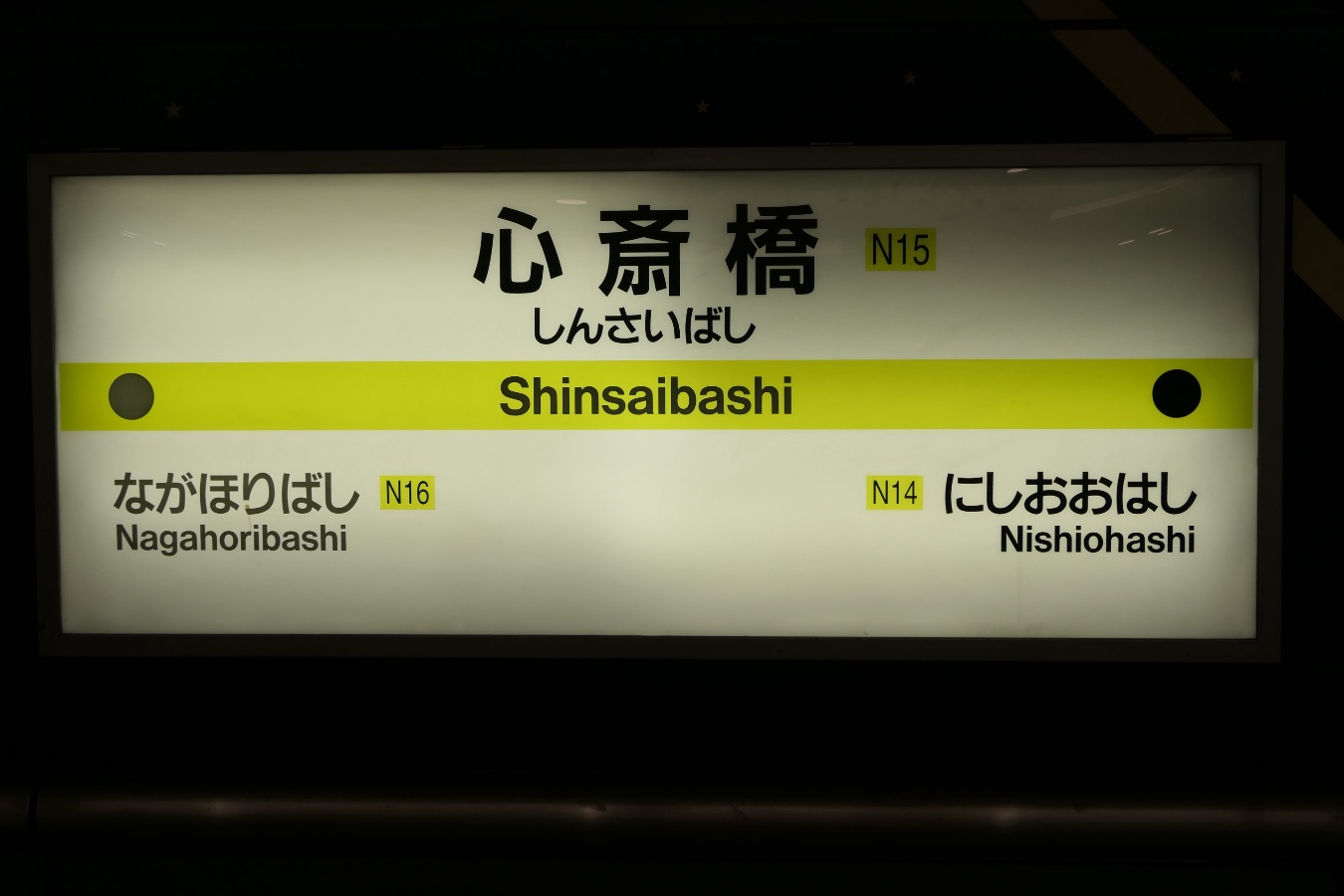 N15 Osaka Metro長堀鶴見緑地線 心斎橋駅 長堀鶴見緑地線 2016.01.072025.11.29 ←N14 西大橋駅・N16 長堀橋駅→ 乗り換え M19OsakaMetro御堂筋線 Y14OsakaMetro四つ橋線(四ツ橋駅) 構造 島式ホーム1面2線 NOTE 1996年12月開業。 デザインテーマは『夕日と心斎橋』。 撮影日:2021年9月