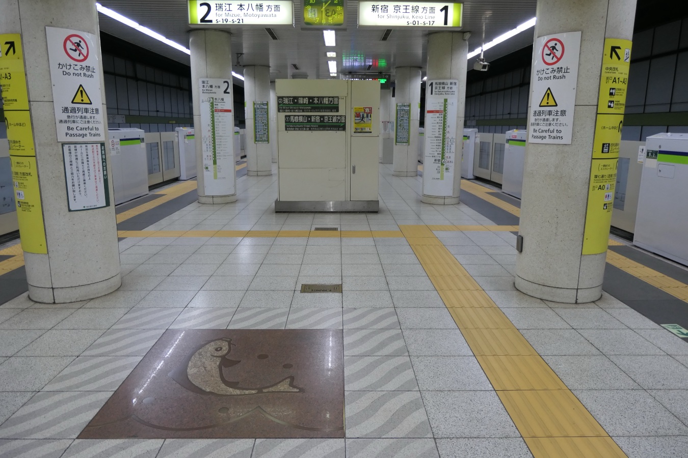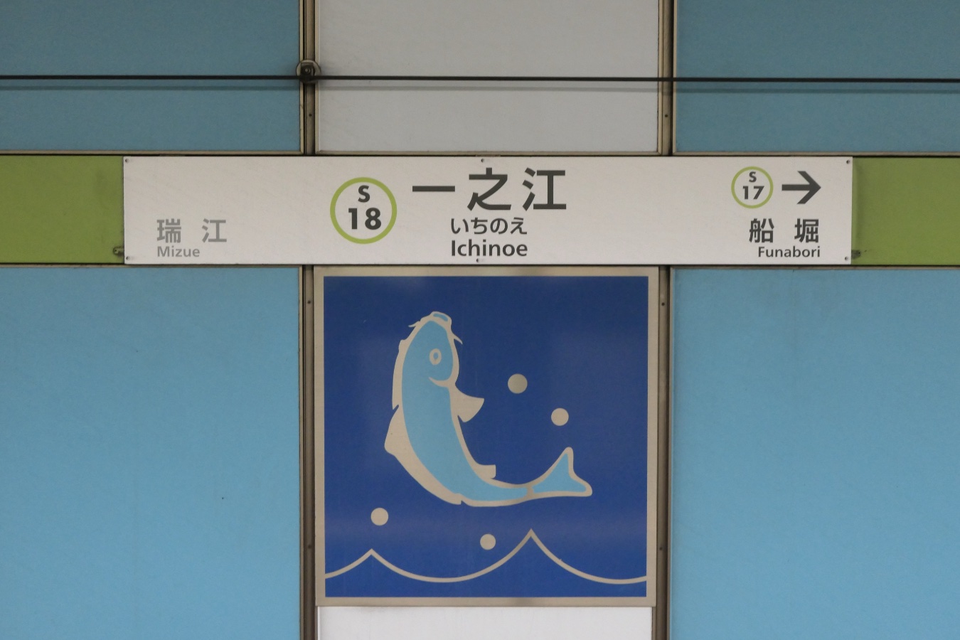 都営新宿線 S18 都営新宿線 一之江駅 都営新宿線 2015.02.032026.02.02 いちのえ Ichinoe ←S17 船堀駅 ・ S19 瑞江駅→ 乗り換え なし 構造 島式ホーム1面2線 NOTE 1986年9月開業。 壁は薄い水色の縦長プレート。駅名標(ひとつおき)の両端2枚は濃い水色のプレートでには鯉が書かれている。 撮影日:2025年11月 撮影日:2018年4月
